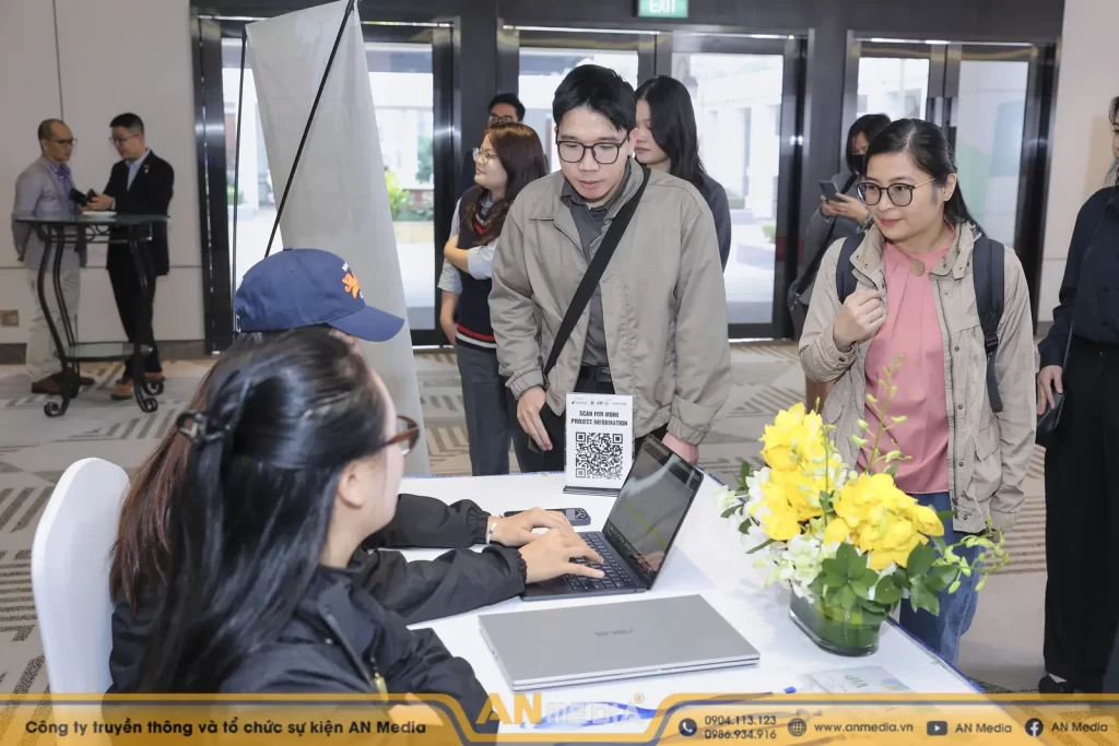 Ngay từ những phút đầu tiên, sự chuyên nghiệp của đội ngũ lễ tân check-in từ AN Media đã tạo nên ấn tượng mạnh mẽ. Không gian đón khách với Welcome Coffee không chỉ là nơi gặp gỡ, mà còn là khởi đầu cho một quy trình đón tiếp nhịp nhàng, giúp các đại biểu cảm thấy được trân trọng ngay khi vừa bước chân vào hội trường.